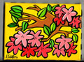 working with acrylics, she often uses these in combination with crayons